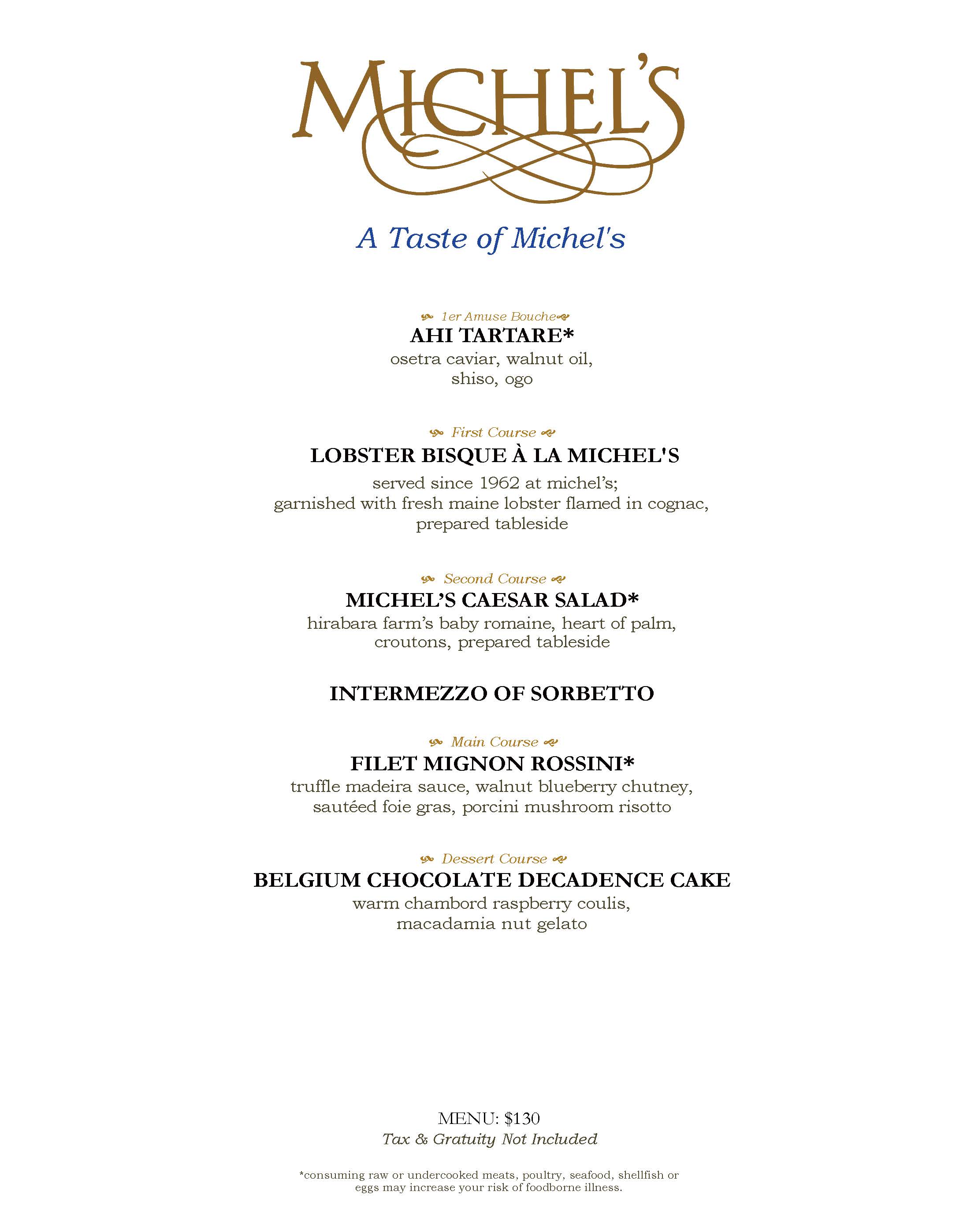 Michel’s is available for celebrations of many sizes with dining or lunch options that range from private, semi-private, and full or partial buyouts. Our special events manager is on hand to assist you with menu customization and wine pairings in addition to facilitating details such as decor and entertainment.