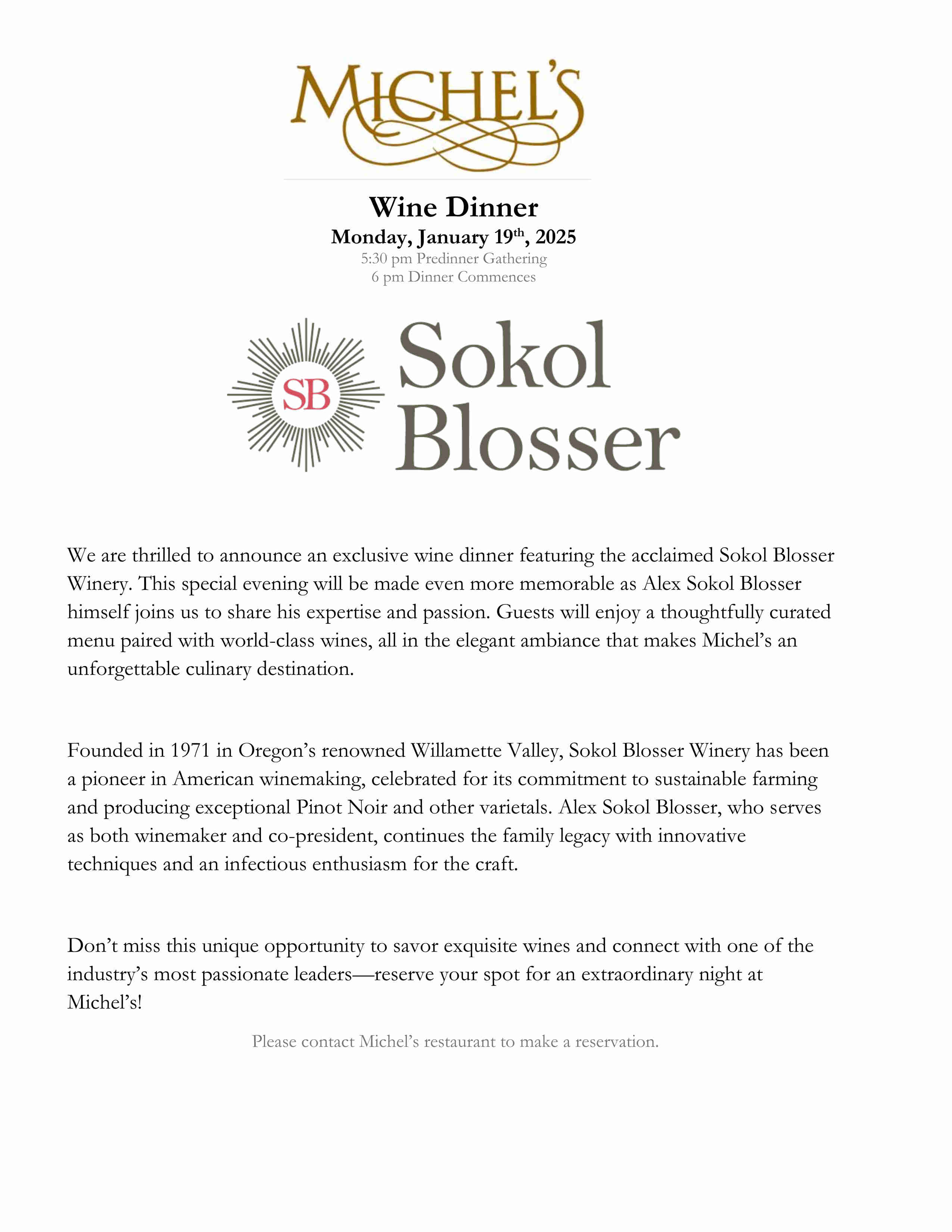 Michel’s Wine Collab Dinner